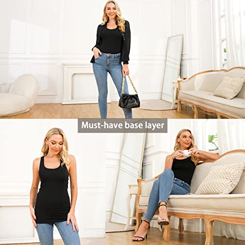 Cotton Long Tank Tops for Women Stretchy Sleeveless Layering Camisole Undershirts Running Yoga 3 Packs