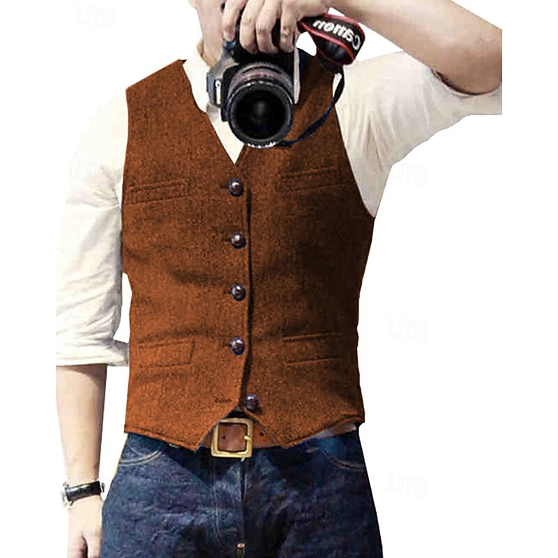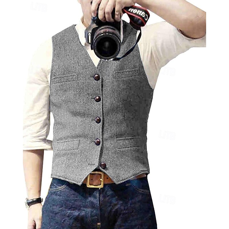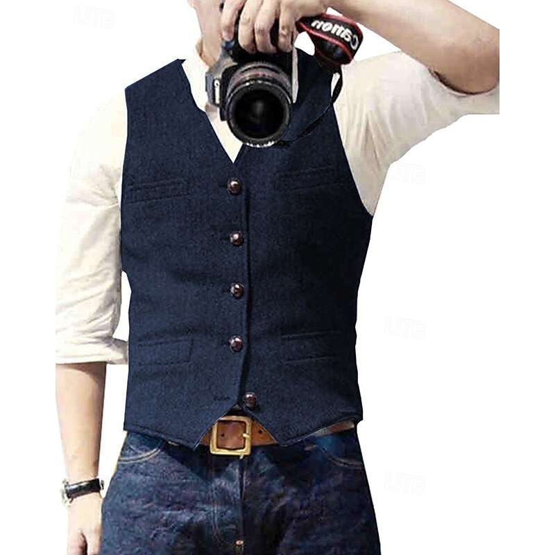 $24.99 - Men's Vest Waistcoat Gilet Vacation Party Business Fashion Casual Spring Fall Pocket Buttons Polyester Comfortable Solid Color Single Breasted One-button V Neck Regular Fit Silver Black Champagne Wine 2025. Shop for cheap Men's Waistcoat online? Buy at lightinthebox.com on sale today!