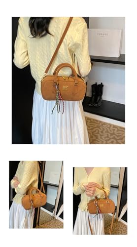 Women's Bucket Crossbody Bag, Brown PU Leather, Gold Hardware, Adjustable Strap, purses for women