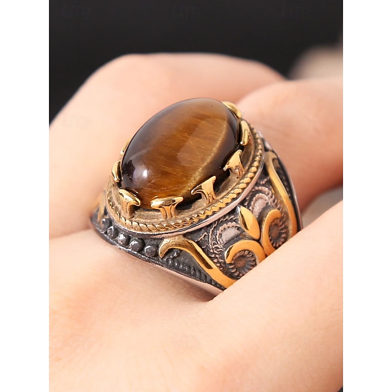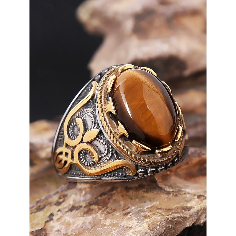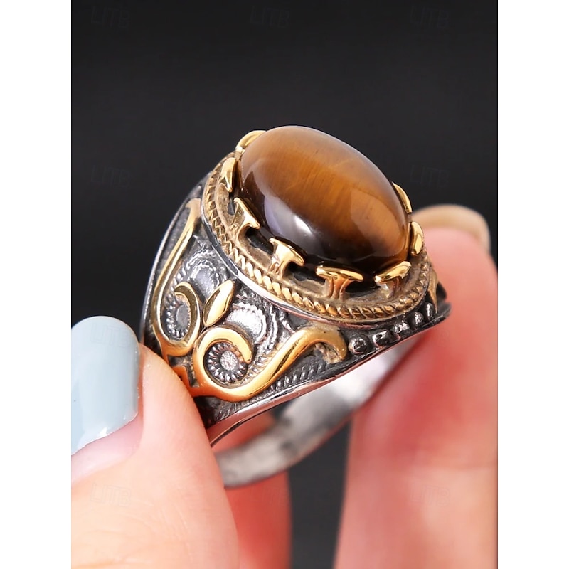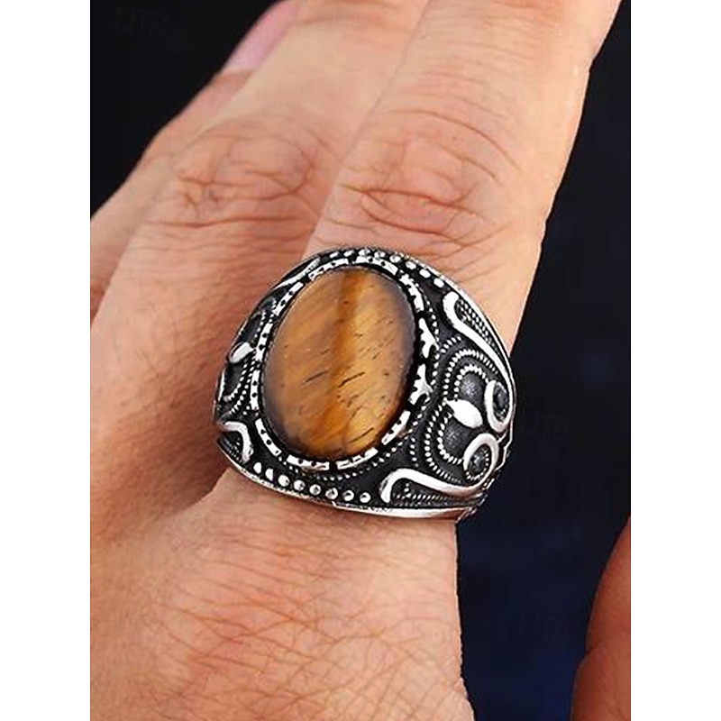 $14.99 - Men's vintage tiger eye stone stainless steel ring, antique silver tribal design, bold statement ring, suitable for casual and formal occasions 2025. Shop for cheap Men's Jewelry online? Buy at lightinthebox.com on sale today!