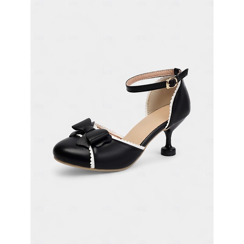 Why Choose Women's 1950s Black Vintage Kitten Heel Pumps - Faux Leather Bow Ankle Strap Shoes with White Trim for Retro Parties or Afternoon Tea?