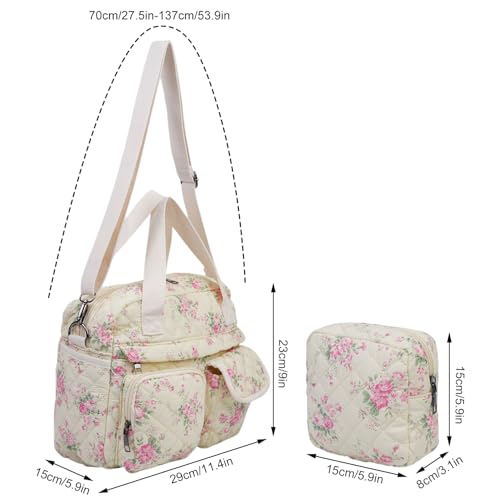 2 PCS/Set Small Cute Floral Quilted Tote Bag with Multi-Pockets for Women, Crossbody Shoulder Everyday Handbags