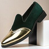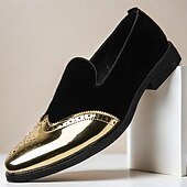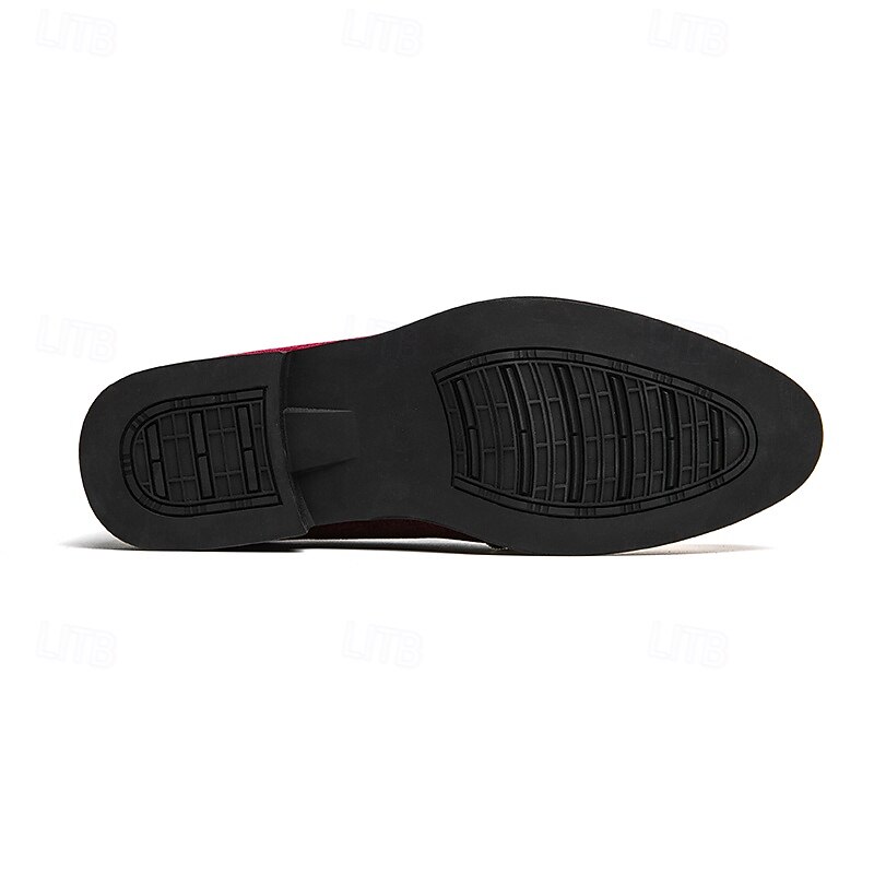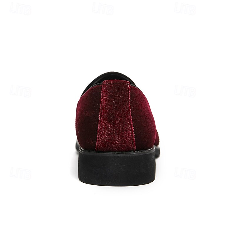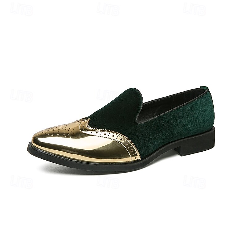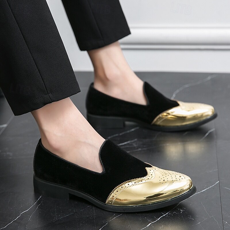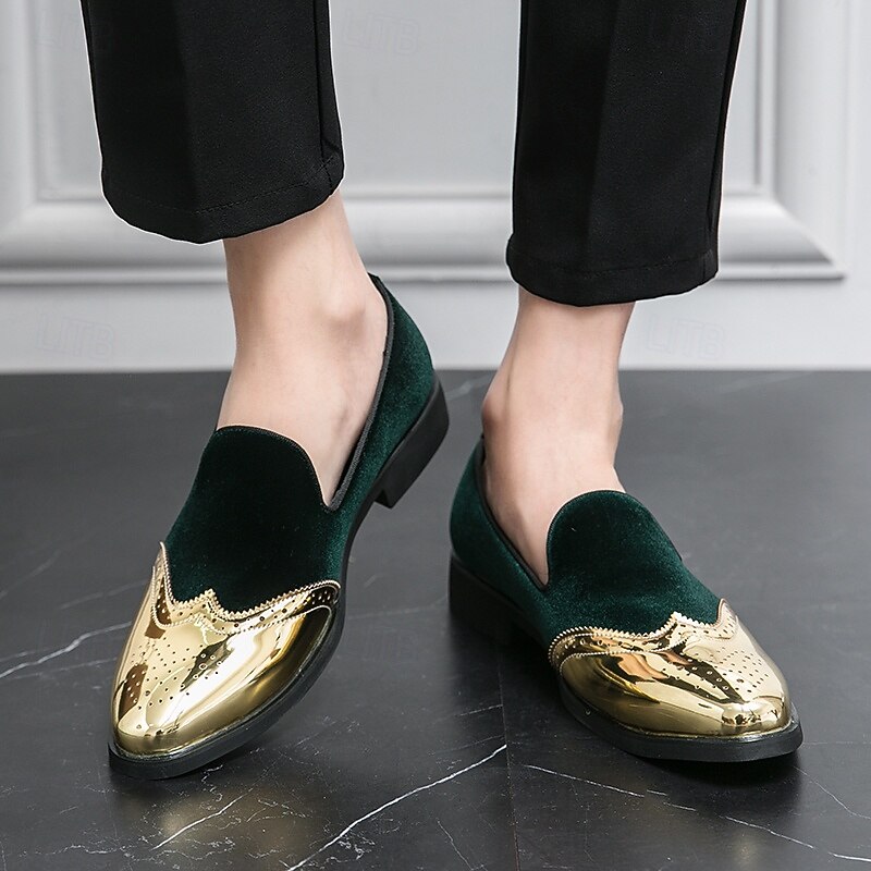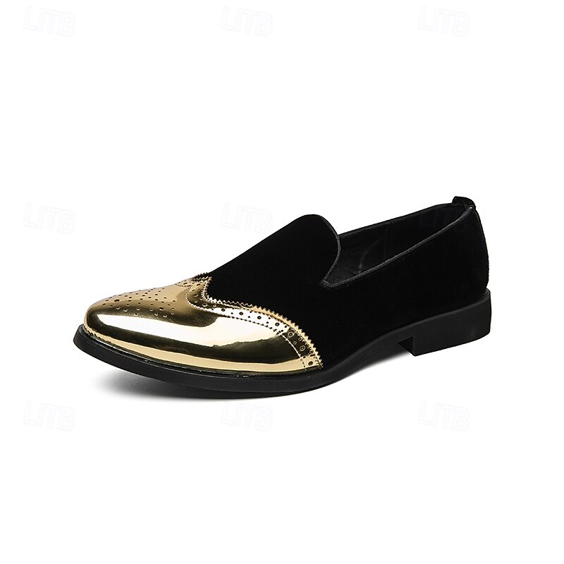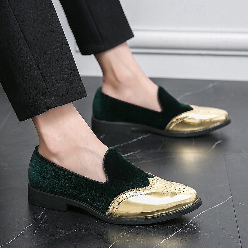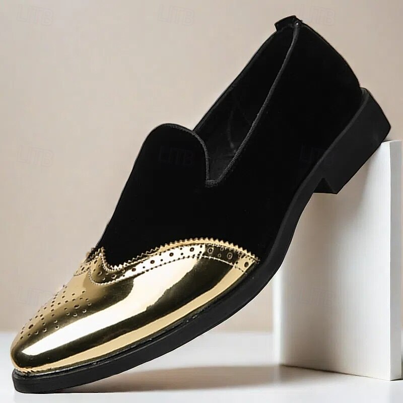 More information about Men's Prom Shoes - Burgundy Velvet and Gold Patent Leather Slip-Ons with Brogue Detailing for Formal Wear