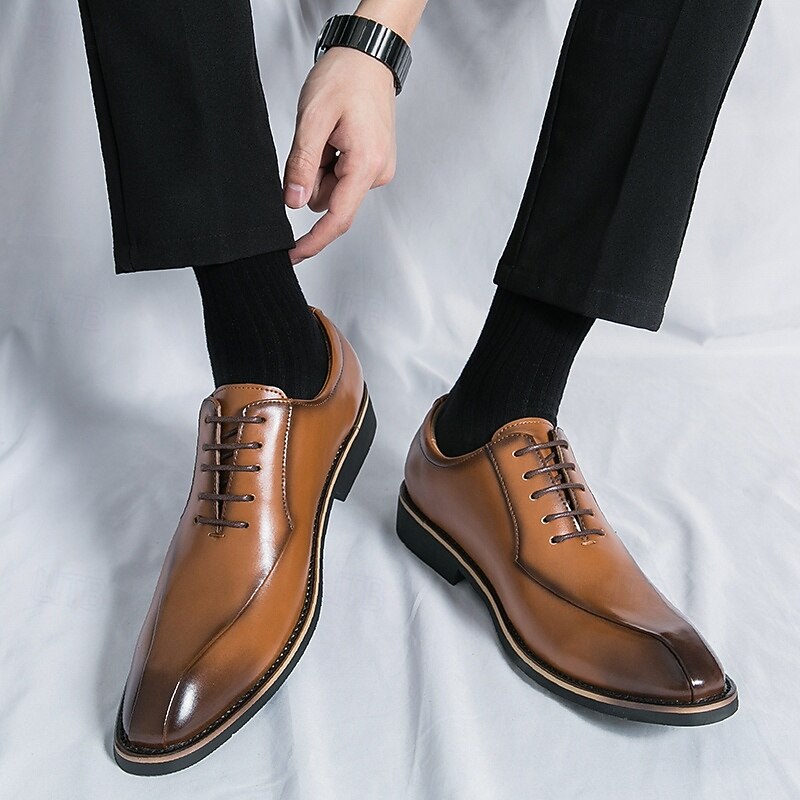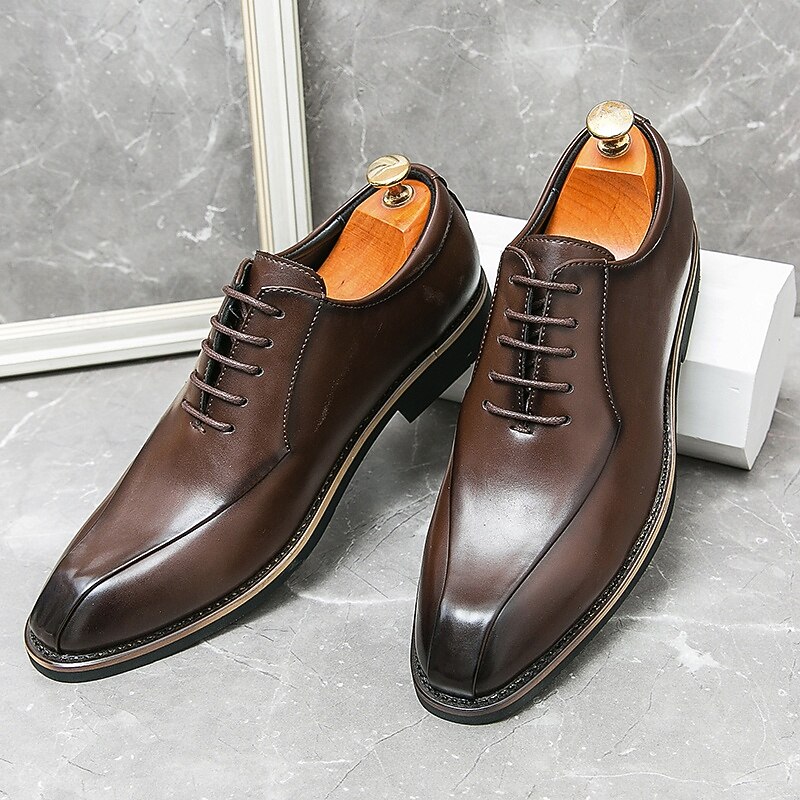 Why Choose Men's traditional Brown Faux Leather Lace-Up Dress Shoes – chic Formal Footwear for Business and Special Occasions?