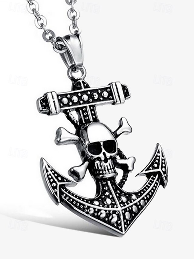 $11.99 - Men's Gothic Skull and Anchor Pendant Necklace – Vintage Pirate-Themed Stainless Steel Chain for Biker, Punk, and Halloween Styles 2025. Shop for cheap Halloween Accessories online? Buy at lightinthebox.com on sale today!