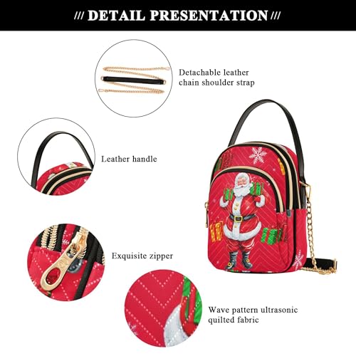 More information about Cute Santa Claus Red Women's Shoulder Purses Funny Chain Strap Wallet Phone Purse Quilted Zipper Lady Crossbody Bag