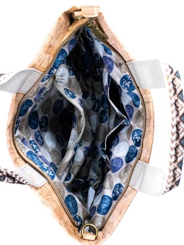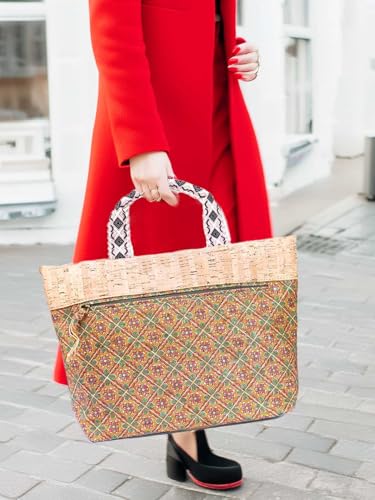 popular ! Portuguese Cork Tote Bag with Floral Design, 14W x 9.5H inches, Natural Cork Material, Adjustable Shoulder Strap