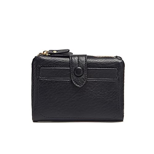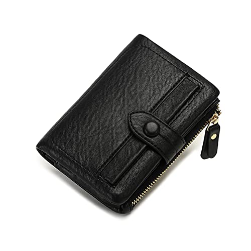 Small Genuine Leather Wallet for Women Trifold/Bifold RFID Blocking with Zipper Coin Pocket Black (Black)