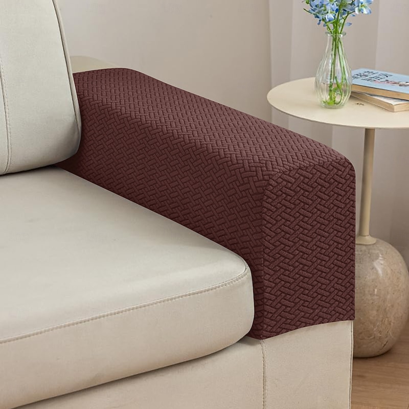 Super supple & Stretchy - Magic Sofa Arm Covers Is Made of High-Stretch Fabric, Highly Inclusive, The Fabric Composition Contains 95% Polyester and 5% Spandex, snug and Soft to the Touch, And Has a Certain Amount of Pull Stretching, Machine Washable, Low Temperature Ironing, No Shrinkage, No Fading