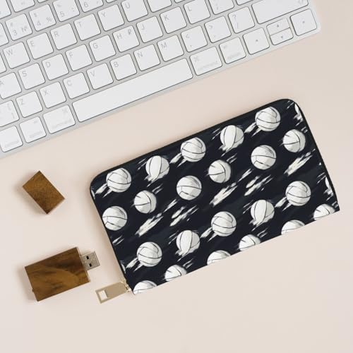 Cool White Baseball Print Wallet Women Men, Long PU Leather Wallets for Women, Cute Womens Travel Wallet Purse Pouch with Zipper Pocket
