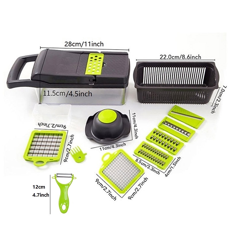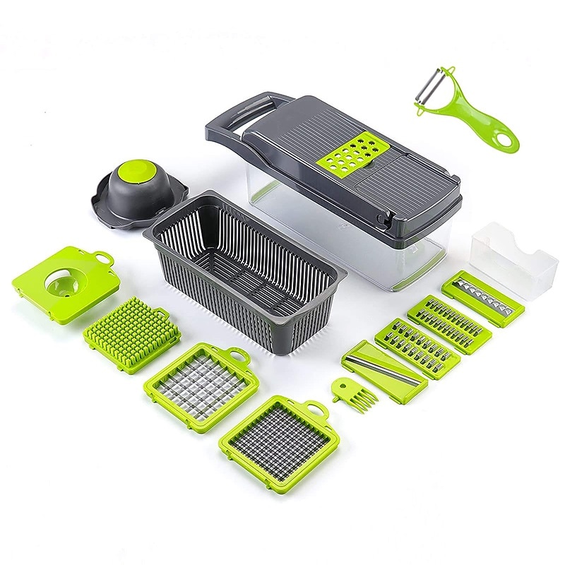 Vegetable Chopper 16 in 1Multifunctional Food Chopper Kitchen Vegetable Slicer Dicer Cutter Veggie Chopper With 8 Blades Carrot Chopper with Container