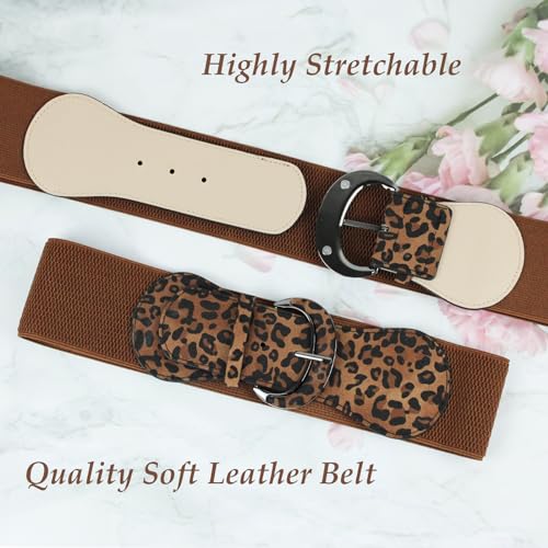 Women Leopard Stretchy Belt Vintage Dress Elastic Waist Belt Leather Buckle Wide Waist Waistband Dress Decoration
