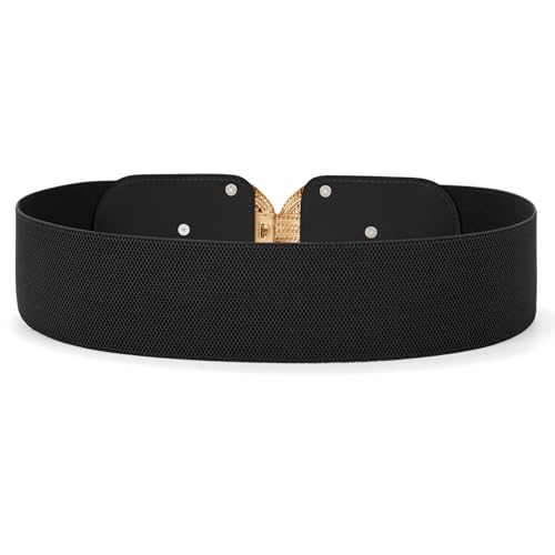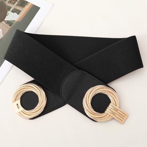 XZQTIVE Wide Belt for Women Fashion Elastic Belt for Dresses Coat Ladies Wide Stretchy Belt Waist Belt with Gold Buckle