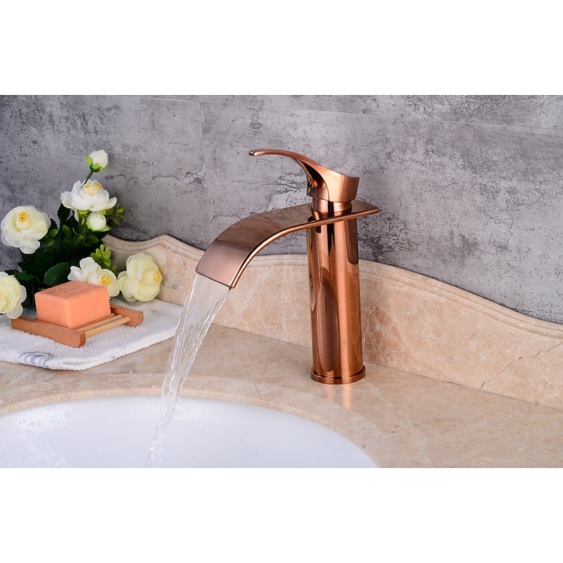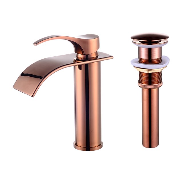 Why Choose Bathroom Sink Faucet,up-to-date Style Single Handle Rose Golden One Hole Waterfall,Oil-rubbed Cooper with Drain and Brass Faucet Body with popular and Cold Water and Pop-up Drain?