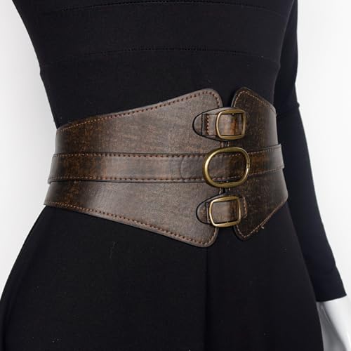 L'VOW Women's Viking Leather Corset Belt - Renaissance Cinch Belt for Halloween Medieval Daily Wear