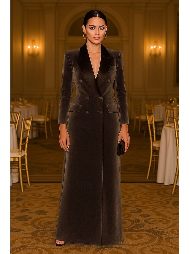 Why Choose Tuxedo Dress Sheath Formal Wedding Guest Satin Velvet Elegant Long Sleeve Floor Length Peak Lapel Double Breasted?