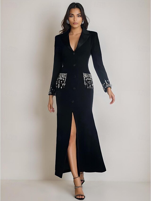 This Tuxedo Dress A-Line Wedding Guest Stretch Crepe Elegant Long Sleeve Ankle Length Split Thigh Peak Lapel Single Breasted combines elegant design with practical functionality. Every detail has been carefully considered to ensure you get the leading possible experience. The finest construction means this product will serve you well for years to come.