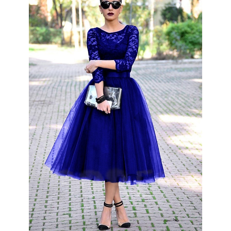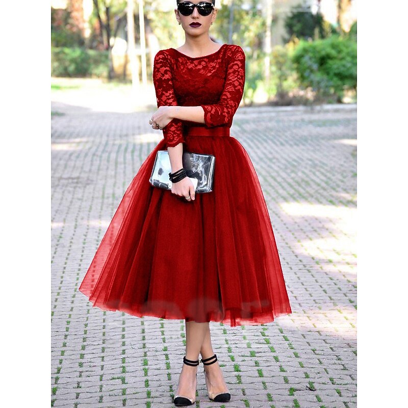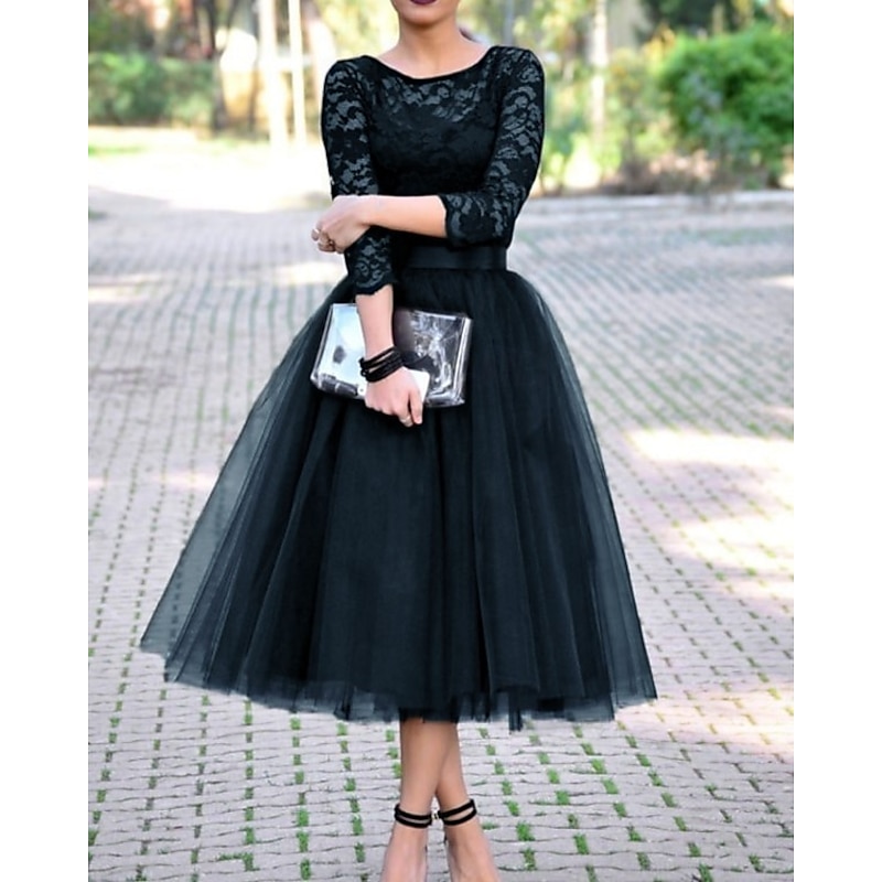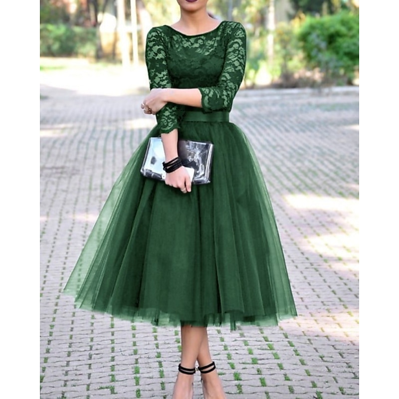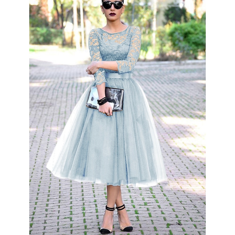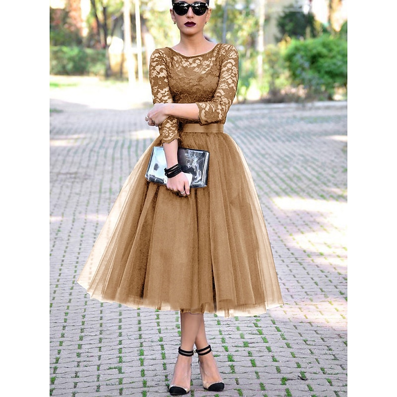 This A-Line Cocktail Dresses Elegant Dress Ankle Length 3/4 Length Sleeve Jewel Neck Fall Wedding Guest Tulle with Pleats Lace Insert Dresses combines elegant design with practical functionality. Every detail has been carefully considered to ensure you get the finest possible experience. The premium construction means this product will serve you well for years to come.