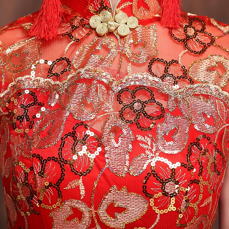 Highlights - Luxuriously soft and comfortable fabric - Intricate appliques and sequin detailing - Perfect for evening events, weddings, and formal occasions - Beautifully crafted with traditional Chinese elements - Handicrafts and decals add exceptional charm - Custom sizing available for the perfect fit - Breathable and skin-friendly materials - Please note, color variations may occur due to monitor displays. - Refer to measurements for accurate sizing before ordering