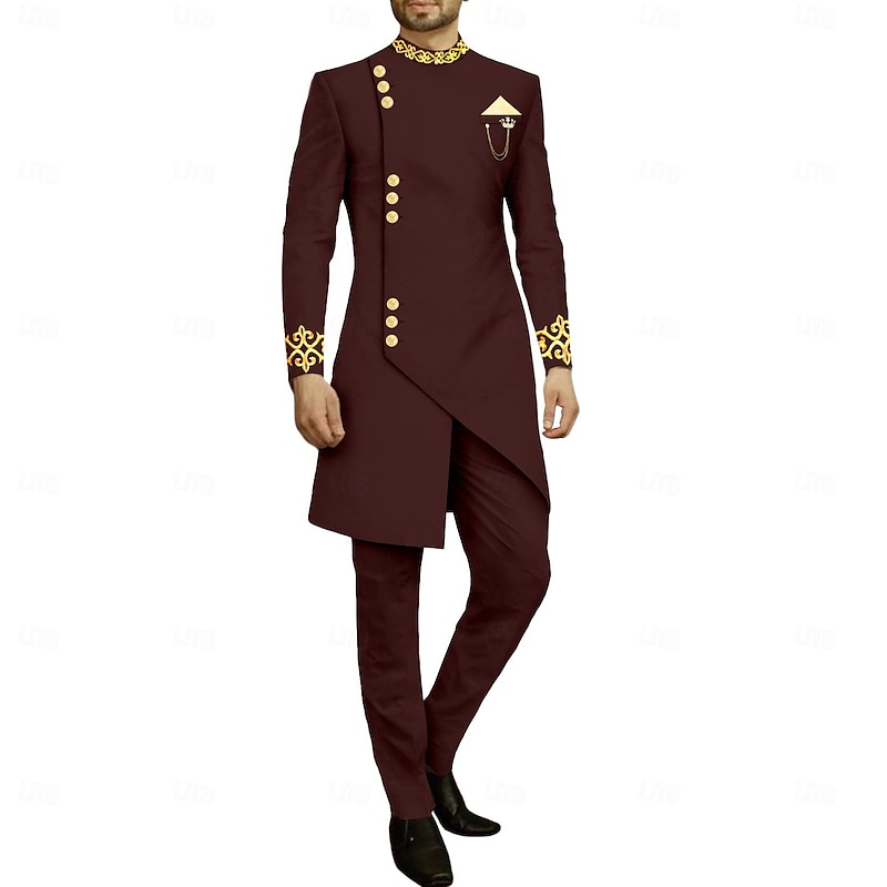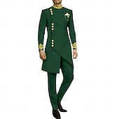 Why Choose Men's Africa Festival Party Suits Black White Fashion Solid Colored Standard Fit 2 Piece Single Breasted More-button?