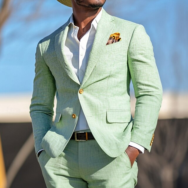 $116.99 - Men's Wedding Party Linen Suits Notch Lapel Sky Blue Sage Fashion Casual Solid Colored Standard Fit 2 Piece Single Breasted Two-buttons 2025. Shop for cheap Party Suits online? Buy at lightinthebox.com on sale today!