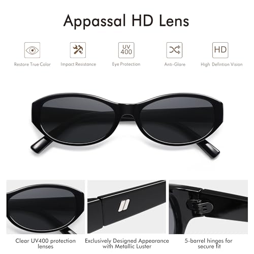 Origin: Imported90s VINTAGE OVAL DESIGN: APPASSAL retro oval sunglasses for women represent an exquisite blend of oval and cat-eye designs, staying abreast with contemporary fashion trends. They embody a vintage yet simplistic elegance, ensuring timeless appeal.supreme: The narrow oval sunglasses are ideally suited for small faces. The lightweight, compact oval frame, integrated nose pads, and robust metal hinges ensure all-day comfort, making them perfect for daily activities and outdoor sports.OVAL AND CAT-EYE STYLE: Vintage Y2K oval frames are perfect for fashionistas, models, and bloggers. They suit all face shapes as 90s sunglasses are versatile. The combination of oval and cat-eye makes these sunglasses distinctive and fashionable.PRODUCT SIZE: Lens Width: 55mm(2.17inches) | Lens Height: 34mm(1.30inches) | Temple Length: 137mm(5.39inches) | Nose Bridge: 17mm(0.67inches).Manual measurements will have a deviation of 1-3 mm.Gift Ideas Package: Oval cateye Sunglasses*1, microfiber pouch*1, microfiber glasses cleaning cloth*1, glasses box*1. These are also gift packed which will be great gifts for your friends and family! Perfect for everyday use. High quality materials and excellent craftsmanship ensure long-lasting durability.