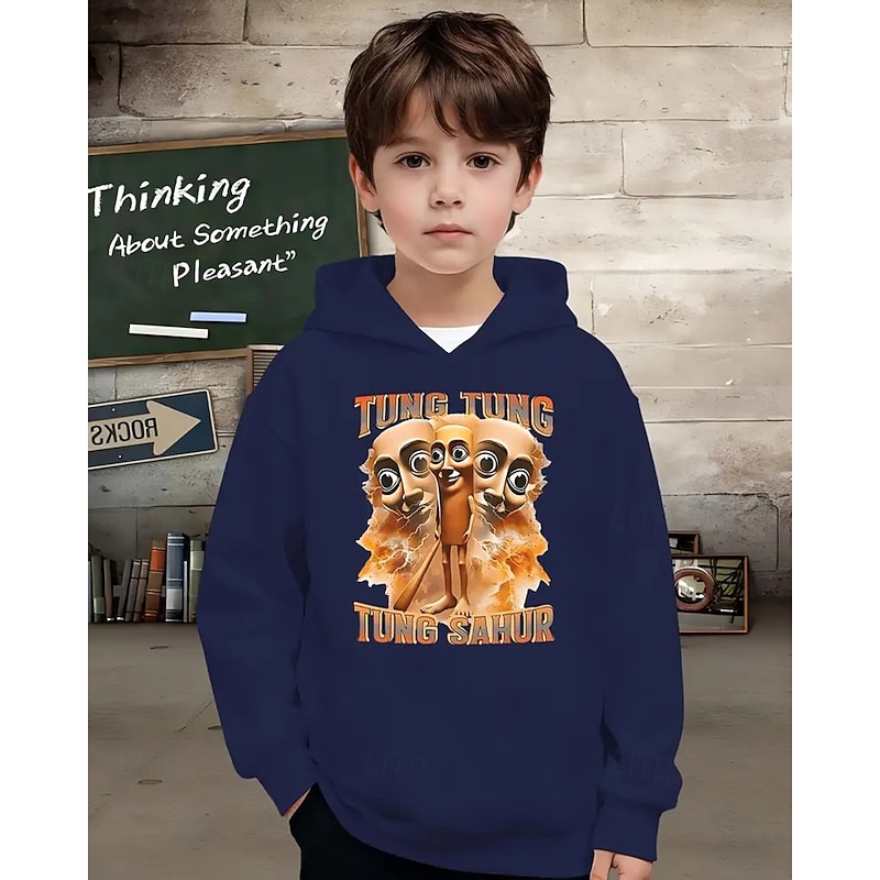 More information about Boys' Casual Hoodie with TUNG TUNG TUNG SAUR Funny Abstract Print 3D Graphic Hoodie Long Sleeve Spring Fall Fashion Streetwear Kids 4-12 Years Hooded Outdoor Casual Daily Regular Fit