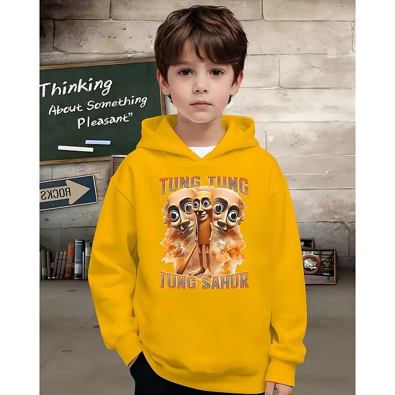 popular ! Boys' Casual Hoodie with TUNG TUNG TUNG SAUR Funny Abstract Print 3D Graphic Hoodie Long Sleeve Spring Fall Fashion Streetwear Kids 4-12 Years Hooded Outdoor Casual Daily Regular Fit