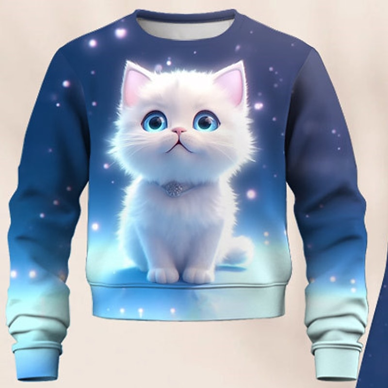 Why Choose Girls' 3D Galaxy Cat Set Sweatshirt & Flare Pants Set Long Sleeve 3D Print Fall Winter Active Fashion Daily Kids 4 years+ Crew Neck Outdoor Vacation Date Regular Fit?