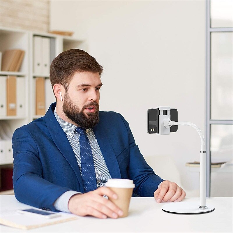 More information about Cell Phone Stand, Adjustable Height & Angle Phone Holder Gooseneck Flexible Arm Universal Phone Stand for Desk, Aluminum Alloy Desktop Cell Phone Holder Compatible with 3.5"-6.5" Device