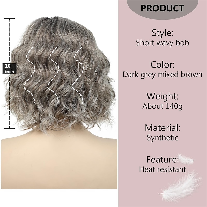 $18.99 - Short Wavy Wig Ombre Grey Mixed Brown Curly Bob Wigs for Women Chin Length Gray Layered Wavy Bob Wig with Dark Roots Natural Looking Synthetic Wigs for Ladies Daily Cosplay Hair Wig 2025. Shop for cheap Older Wigs online? Buy at lightinthebox.com on sale today!