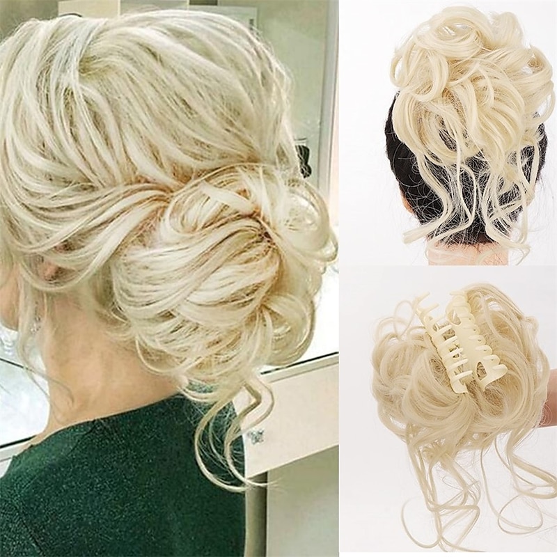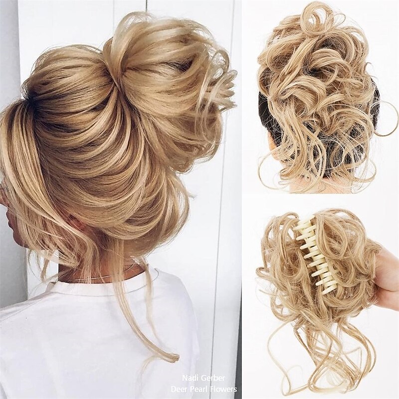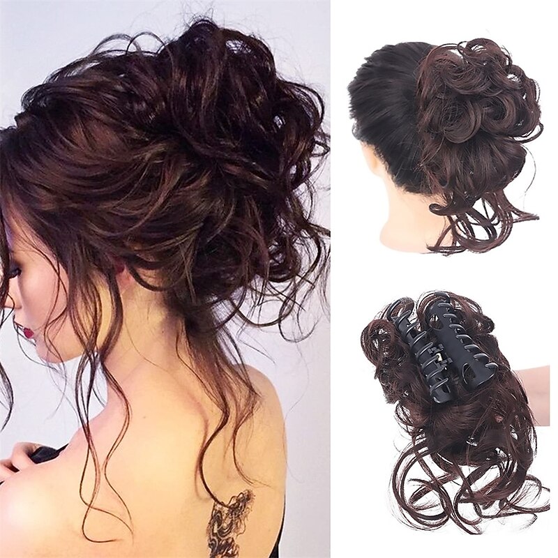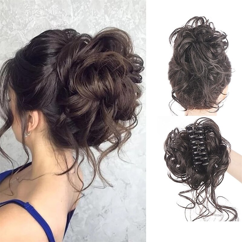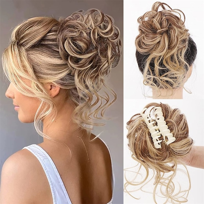 Claw Messy Bun Hair Pieces Clip Wavy Curly Hair Chignon Clip in Hairpieces Tousled Updo Donut Hair Bun Synthetic Fake Hair Ponytail for Women Girls
