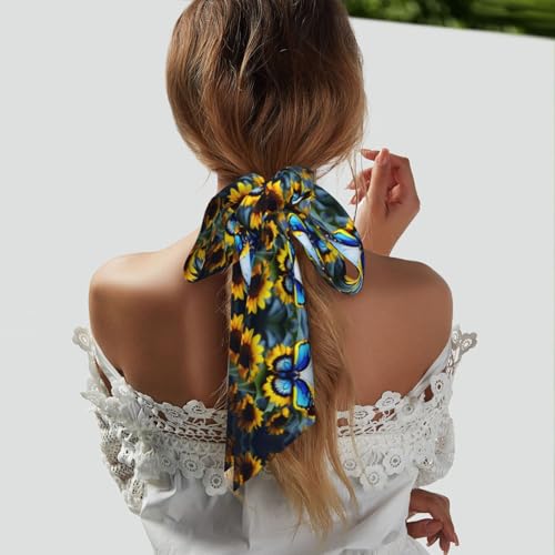 • Sunflower Blue Butterfly Material: Made of top-grade 100% polyester satin silk, supple, smooth and shiny; Square bandana, classy neckerchief for women.
