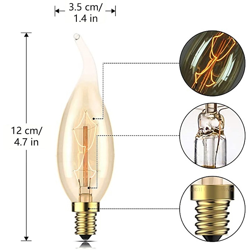 More information about 10pcs 6pcs 4pcs 40W Vintage Edison Light Bulbs Antique Incandescent Bulb E14 C35L Candle Pendant Light snug Yellow 2200-2700k Retro Dimmable Decorative 220-240V