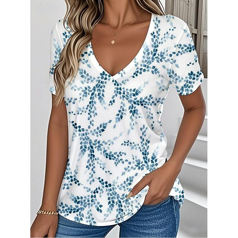 More information about Women's T Shirt Floral Graphic Plants Vintage present-day Classic Short Sleeve V Neck Regular Tops Daily Print Red Blue Purple Green Light Blue Summer Spring