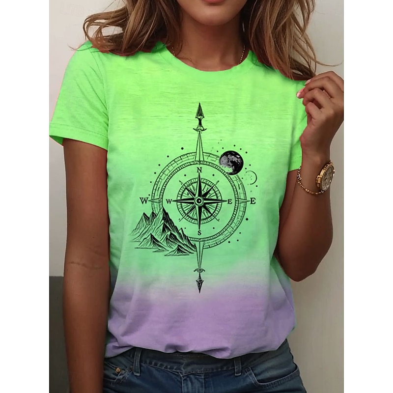 This Women's T Shirt Ombre Graphic Vintage sleek Classic Short Sleeve Crew Neck Regular Tops Daily Weekend Print Pink Blue Orange Green Summer Spring combines elegant design with practical functionality. Every detail has been carefully considered to ensure you get the best possible experience. The first-class construction means this product will serve you well for years to come.
