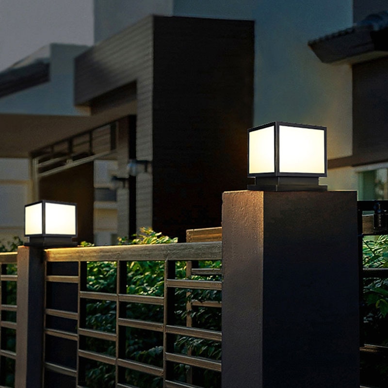 popular ! Outdoor Column Light IP65 E26 Waterproof Glass Column Light Outdoor Square LED Column Light Villa Courtyard Fence Landscape Column Light Aluminum Column Light