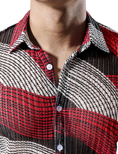 More information about JOGAL Mens Mesh See Through Floral Shirts Stretch Wrinkle-no-cost Regular Fit Short Sleeve Casual Button Down Summer Shirts