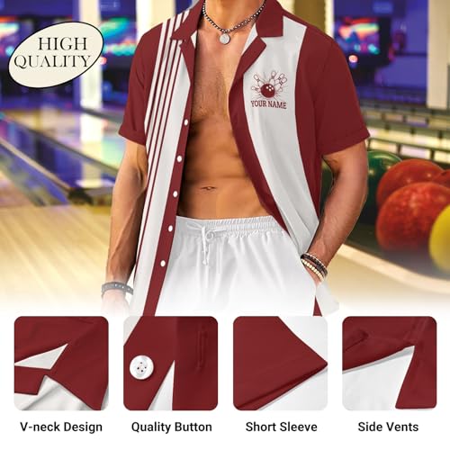 Custom Retro Bowling Shirts for Men, Vintage Short Sleeve Button Down Casual Shirts with Personalized Team Name