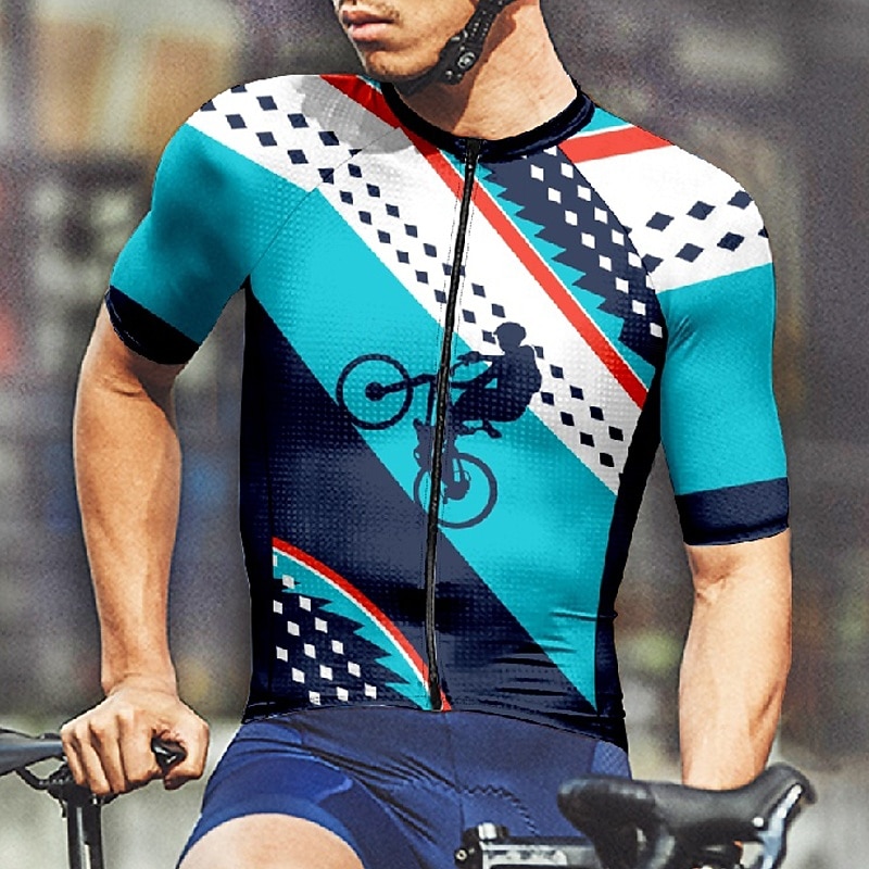 Why Choose Men's Cycling Jersey Graphic Geometic Short Sleeve Bike Tee Tshirt Jersey with 3 Rear Pockets Mountain Bike MTB hasty Dry Anatomic Design Wicking Breathable Sports Red Blue Sky Blue Clothing Apparel?