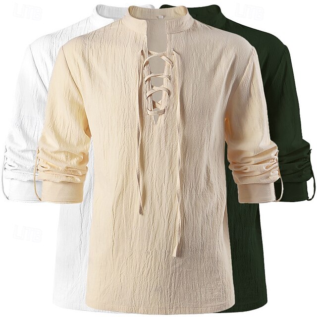 Why Choose Medieval Renaissance 17th Century Blouse / Shirt Cosplay Costume Celtic Knight Elven Drawstring Solid Color Fancy Dress Men's Pirate Fantasy Halloween Masquerade Casual Daily Renaissance Fair Adults'?