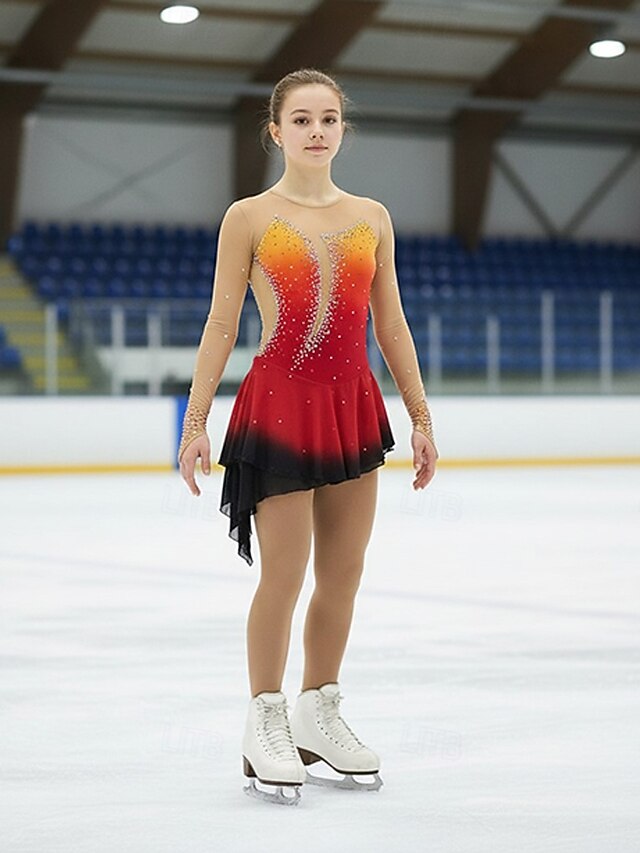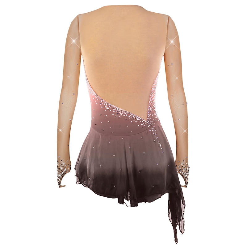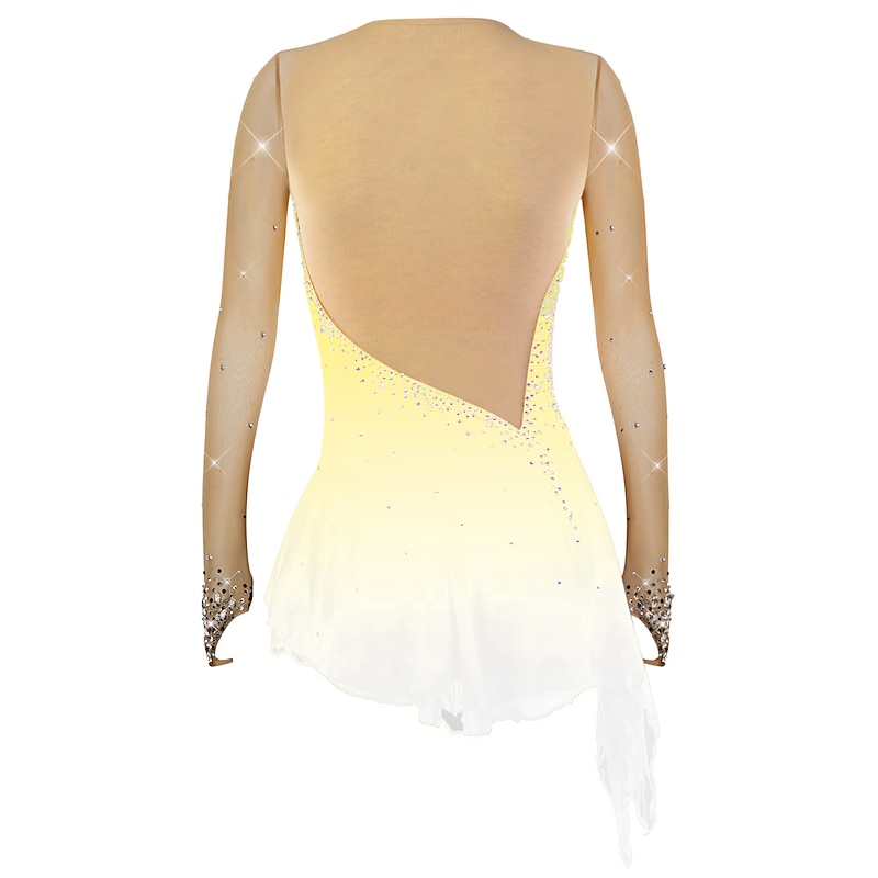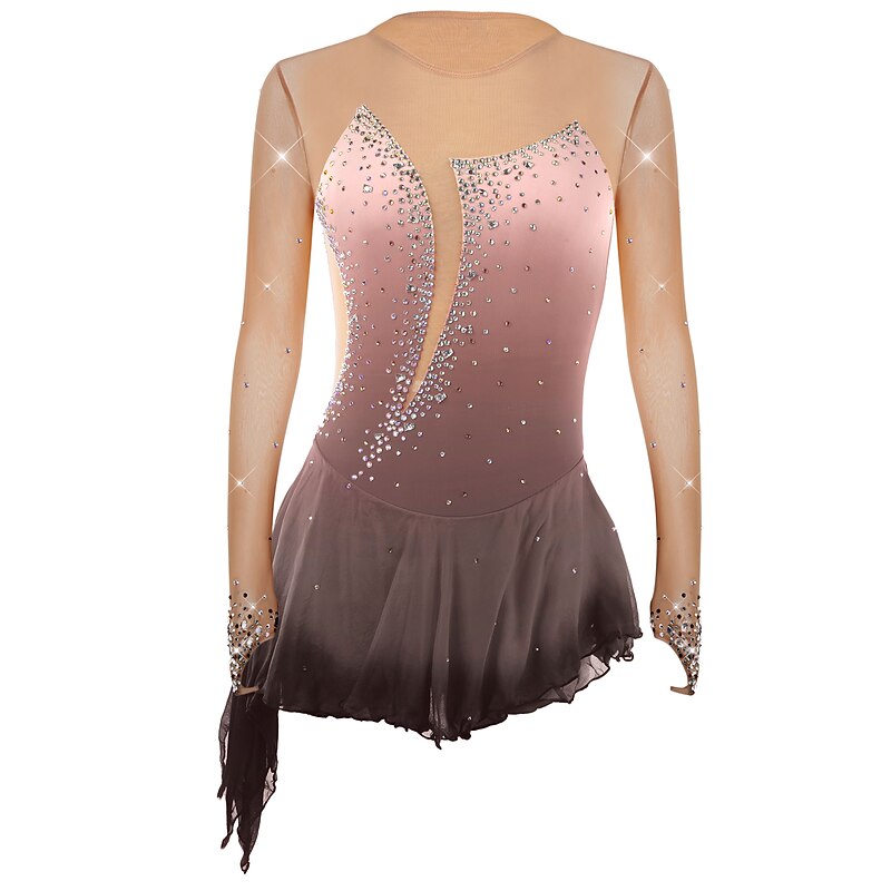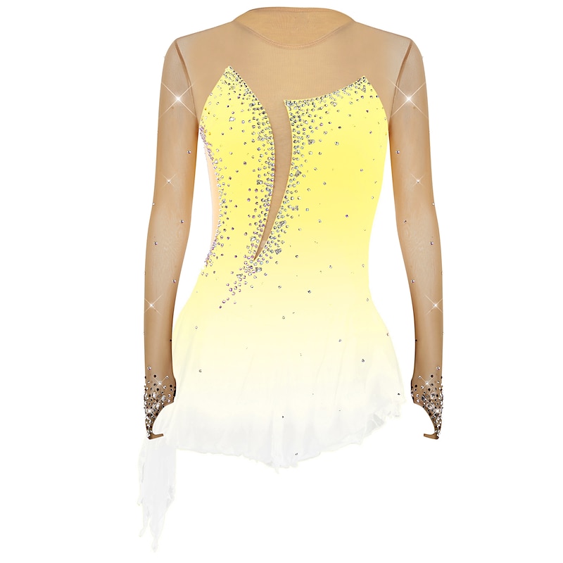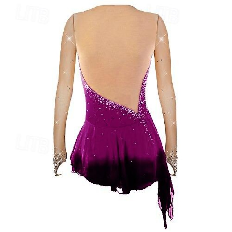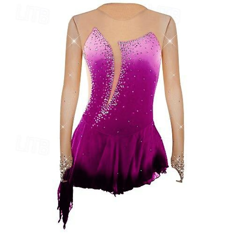 More information about Figure Skating Dress Women's Girls' Ice Skating Dress Outfits Violet Yellow Dusty Rose Asymmetric Hem Mesh Spandex Competition Skating Wear Fashion Long Sleeve Ice Skating Figure Skating