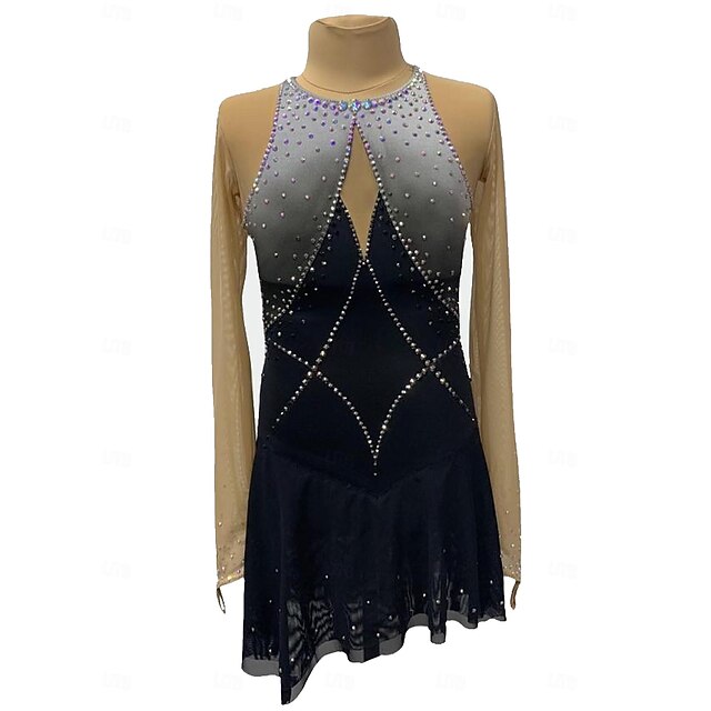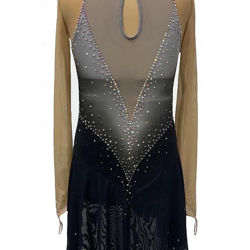Why Choose Figure Skating Dress Women's Girls' Ice Skating Dress Black Patchwork Thumbhole Mesh Spandex Stretchy Training Practice Professional Skating Wear Crystal / Rhinestone Long Sleeve Ice Skating Figure?