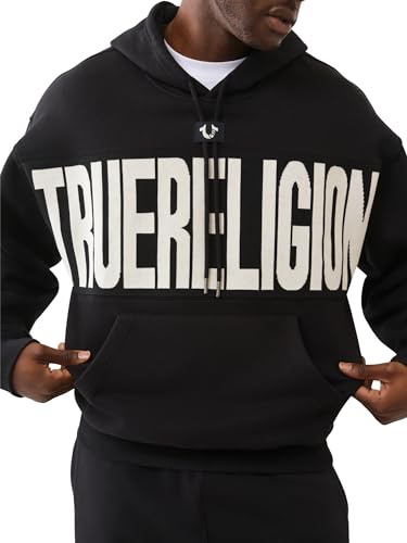 popular ! True Religion Men's Knit Panel TR Cinched Hoodie – Pullover Hooded Sweatshirt