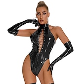 More information about Dance Costumes Exotic Dancewear Pole dance Leotard / Onesie Hollow-out Pure Color Splicing Women's Training Performance Sleeveless High PU