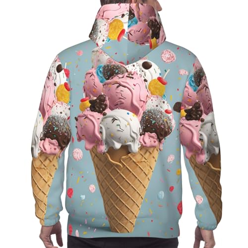 Men's Fleece Pullover Hoodie Long Sleeve Hooded Sweet Ice Cream Sweatshirt Casual Shirts With Pockets