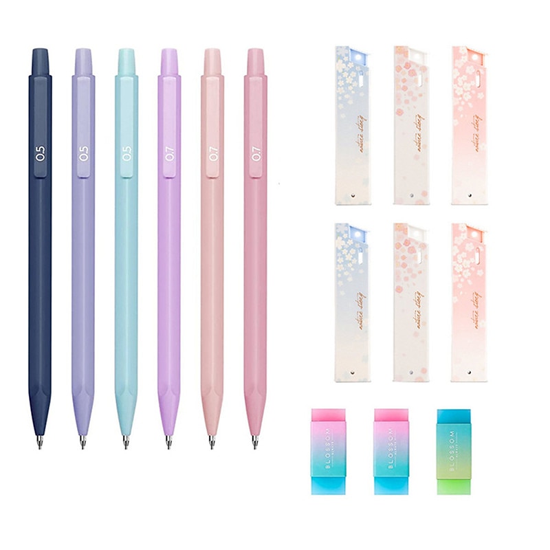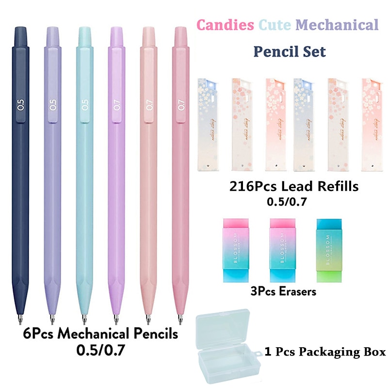 popular ! Mechanical Pencil Set, 6PCS Pastel Mechanical Pencils 0.5mm & 0.7mm with 216PCS HB Pencil Leads and 3PCS Erasers, Aesthetic Mechanical Pencils for Girls Writing