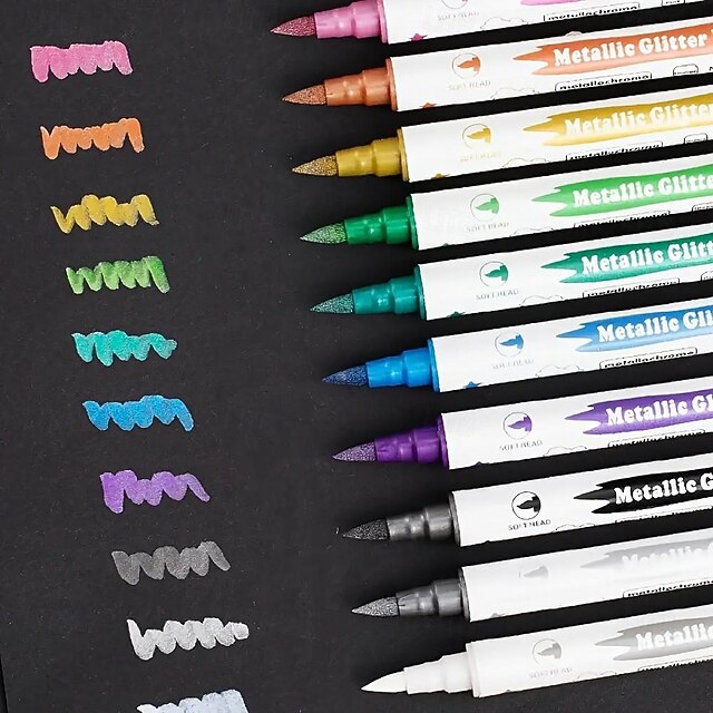 $8.99 - Metallic Glitter Dual Tip Marker Pens with Brush and Fine Nibs Craft Supplies Scrapbooking 10pcs 2025. Shop for cheap Stickers online? Buy at lightinthebox.com on sale today!
