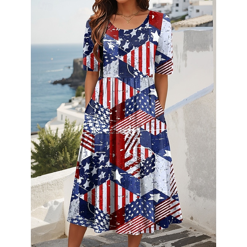 Why Choose Women's Patriotic Midi Dress Summer Dress Pleated Dress Vacation Casual Holiday Loose Fit Graphic Striped American Flag Half Sleeve Crew Neck Red Blue Dark Blue Summer?