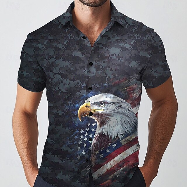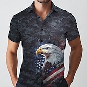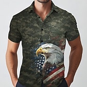popular ! Men's Camouflage American US Flag Eagle Shirt Casual Shirt Button Up Shirt Short Sleeve Army Militray Outdoor Vacation Streetwear Summer Spring Turndown 3D Print Collared Shirts Army Green Dark Blue